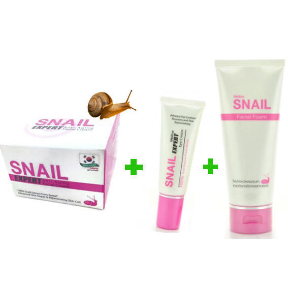 Набор Тайский уход для лица на основе слизи улитки Mistine Snail Expert - пенка 80 гр. + крем под глаза 10 гр. + крем для лица 40 гр.