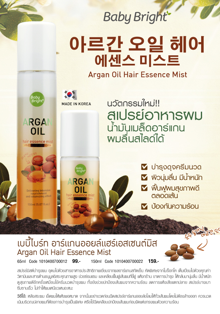 Baby Bright Argan Oil Hair Essence Mist 65 ml. Thailand